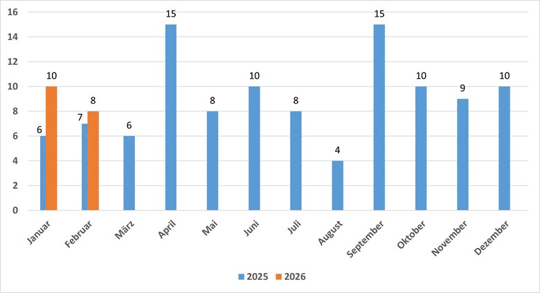 Im Februar 2026 wurden insgesamt acht Sicherheitsvorfälle über ein Meldeformular an das SAX.CERT übermittelt.
